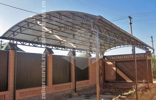 Если вы выберете крышу из профлиста, то под ней будет довольно темно, и вам придётся дополнительно устанавливать освещение. Используя поликарбонат, вы получаете сразу два преимущества: защиту от непогоды и естественное освещение.