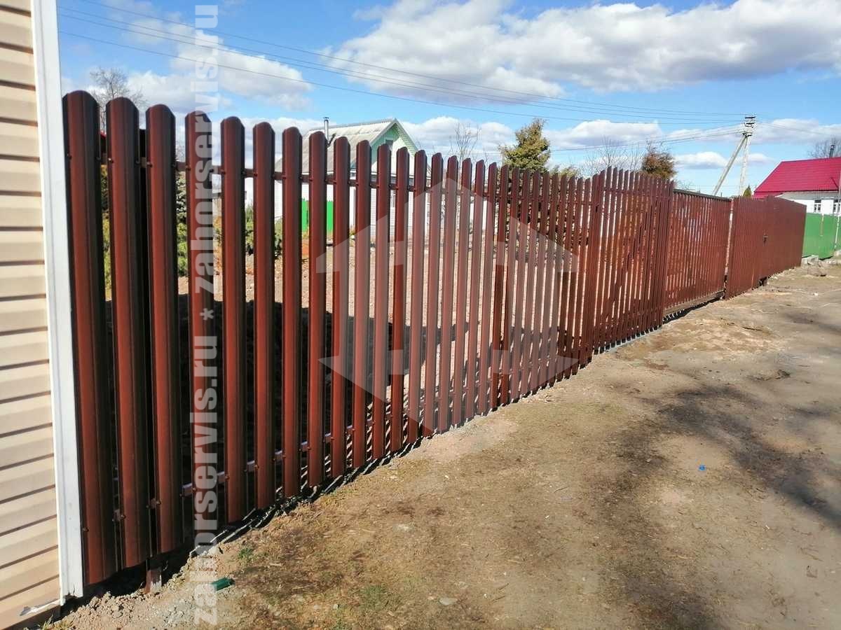 Забор из евроштакетника с утрамбовкой щебнем 162 метра