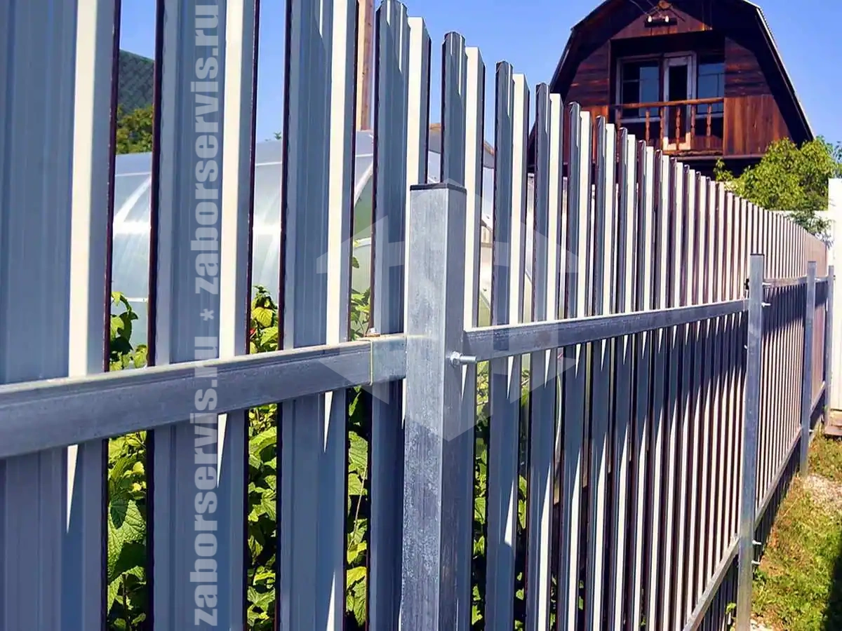 Забор из металлического штакетника оцинкованный 45 метров