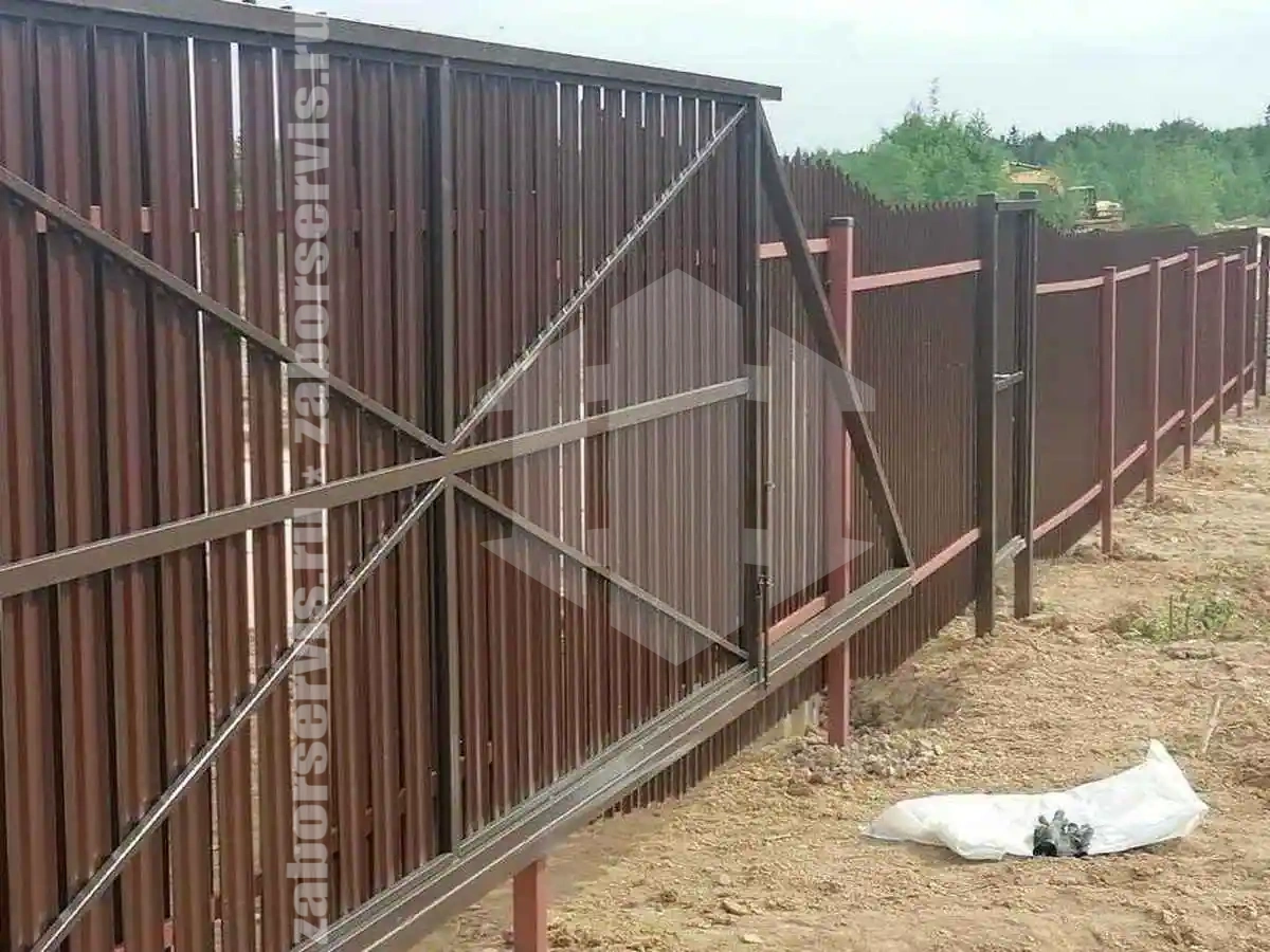 • Забор из металлического штакетника коричневый 38 метров Артикул: S33E2861
