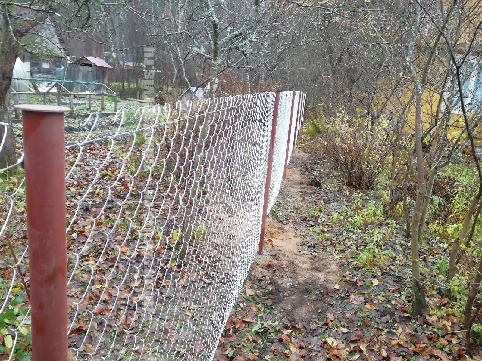 Забор из сетки рабицы в натяг с протяжкой арматуры 20 соток
